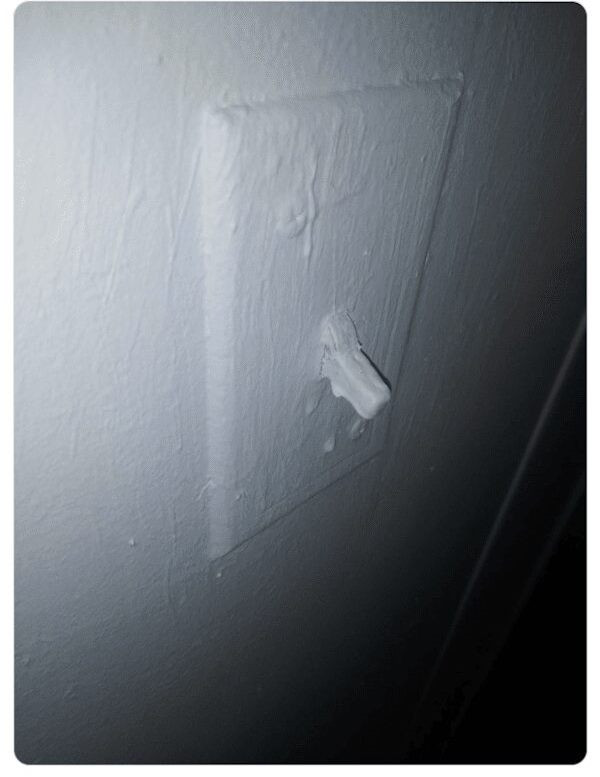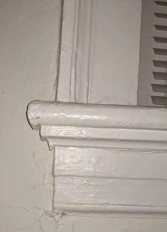 Иногда создаётся ощущение, что у некоторых мастеров кисть — это продолжение души… только душа у них ленивая. Зачем что-то заклеивать или снимать, если можно просто закрасить всё целиком? Листья деревьев, розетки, дверные ручки и даже монета, случайно попавшая под валик — всё превращается в единый «монолит чистоты».
